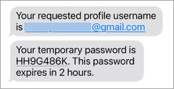 Here's an example of a text message containing the requested account sign-in information.