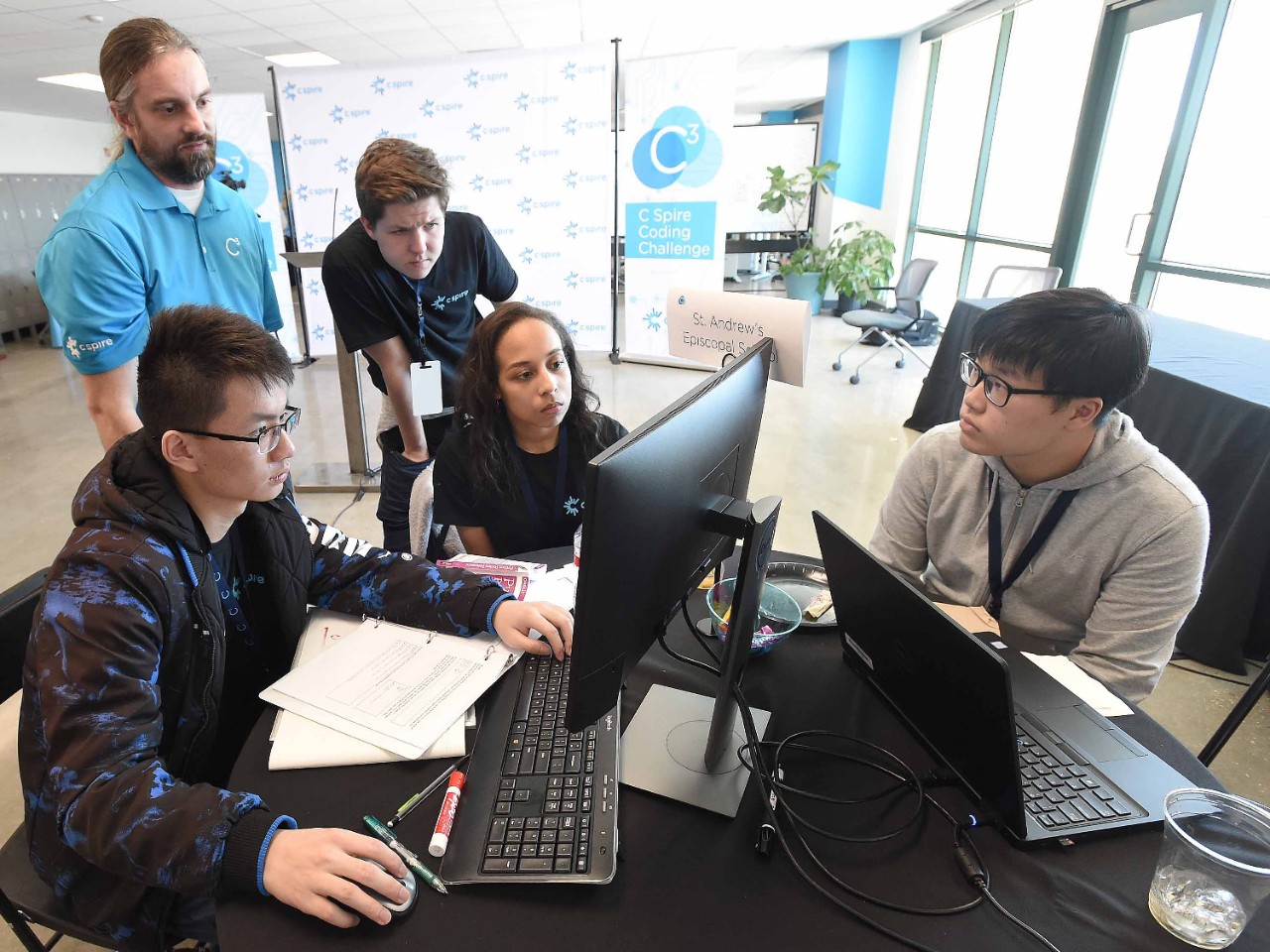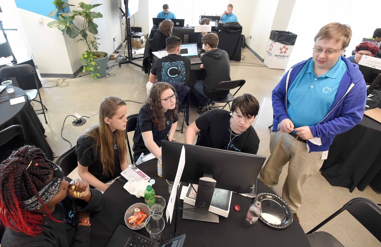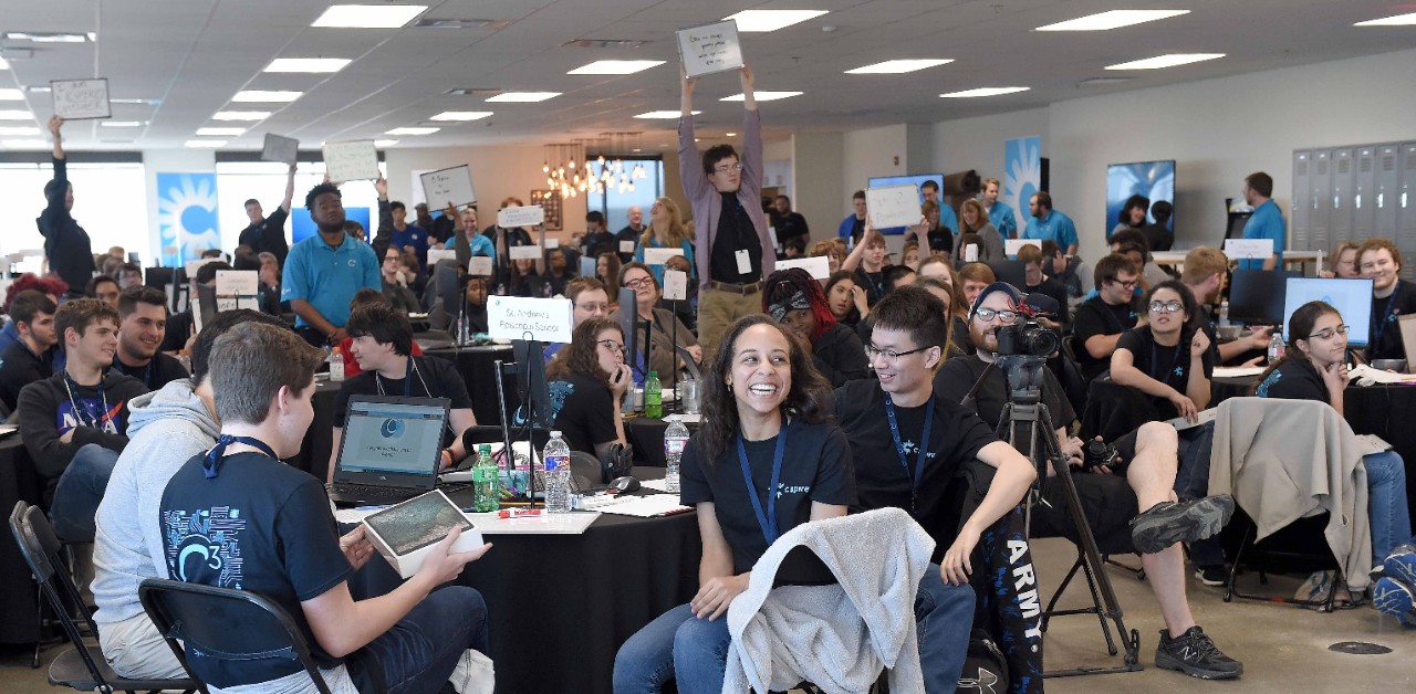 Teams work with a C Spire mentor to flex their critical thinking and problem solving muscles to build a solution to the year's unique coding challenge.
